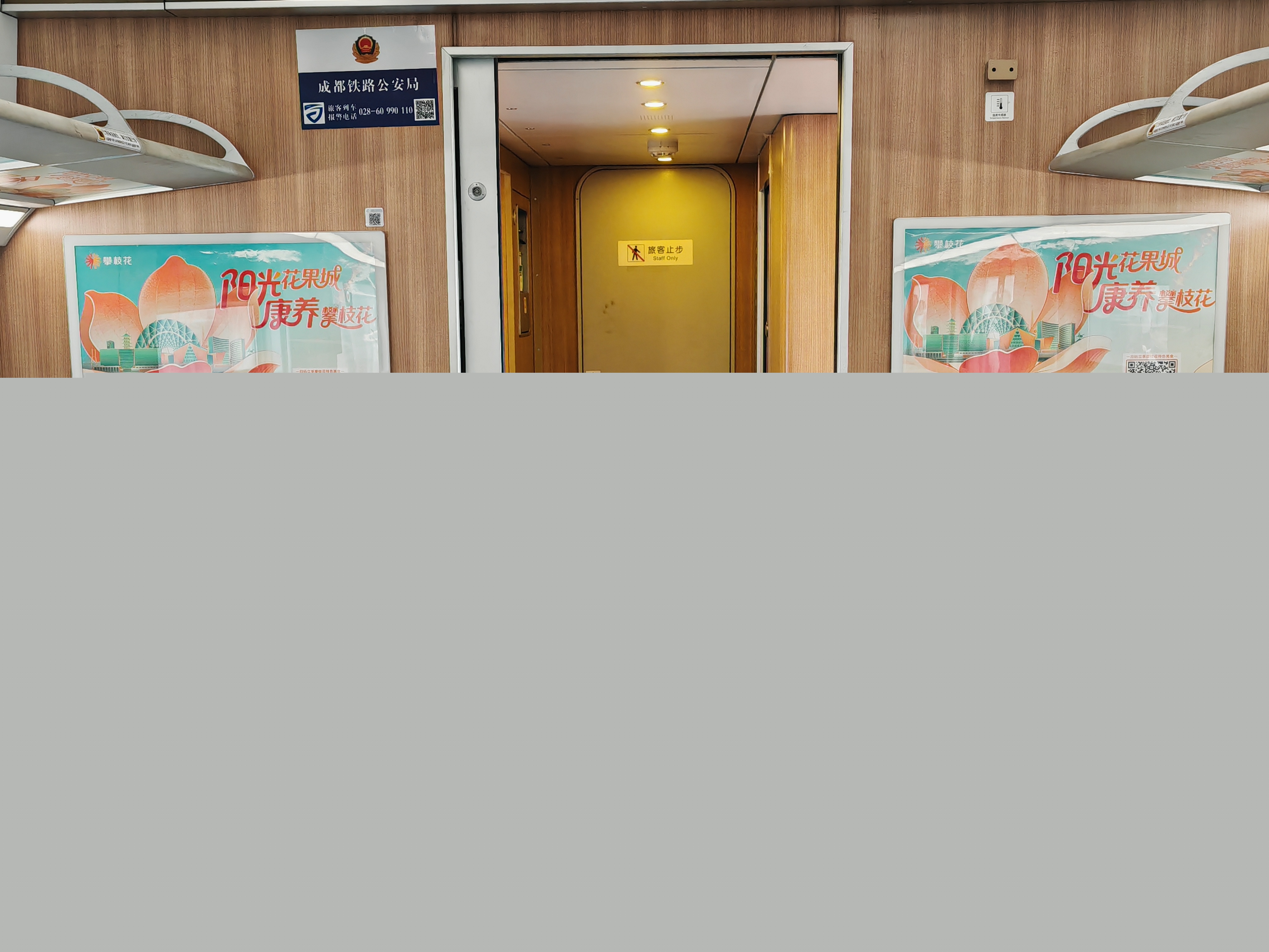 近日,一列由攀枝花南站驶向重庆北站的C78次“复兴号”动车,化身为流动的“攀枝花城市会客厅”。车厢内,一幅幅印有“阳光花果城 康养攀枝花”的醒目海报、行李架下精巧的贴纸,以及每张餐桌上的小桌贴等宣传图案和标语,共同构成了一道靓丽的风景线。